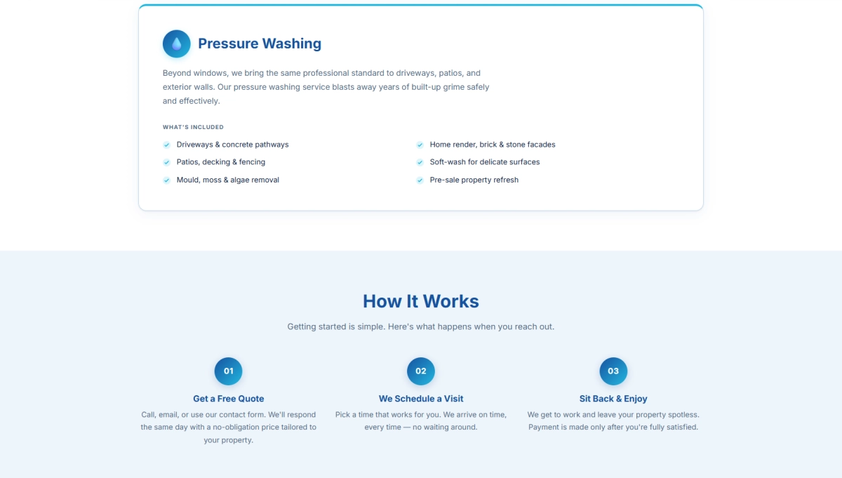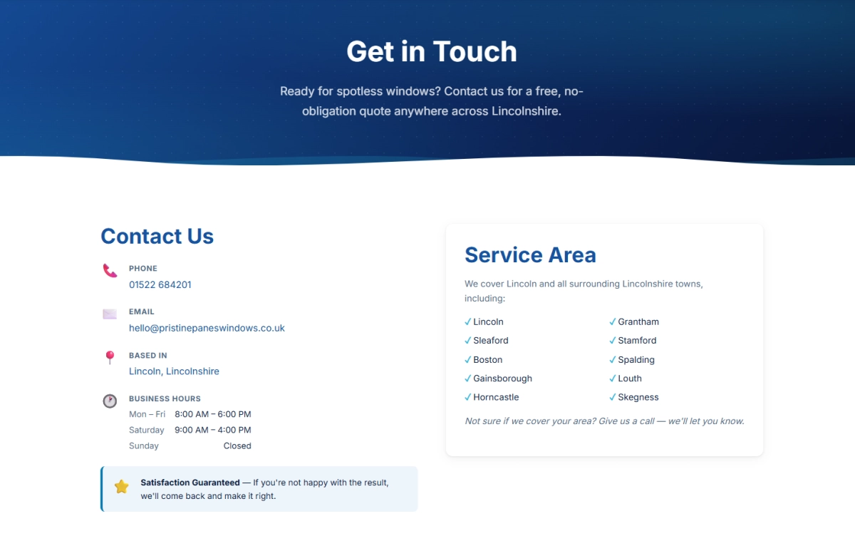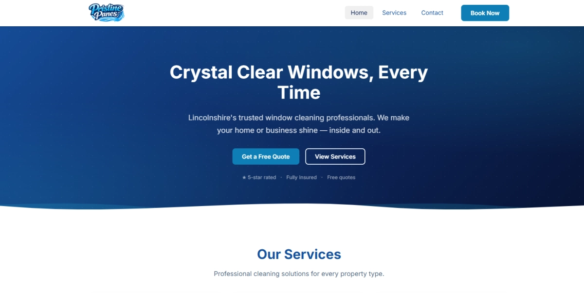 We designed and built Pristine Panes a professional, trustworthy website that reflects the quality of their service. The site includes a clear services page covering residential and commercial offerings, a simple contact page. The crisp, clean design reinforces the brand and helps convert visitors into repeat customers.